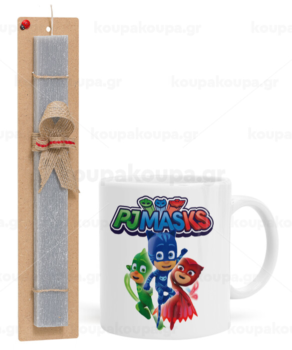 PJ masks, Πασχαλινή Λαμπάδα με Κούπα κεραμική (330ml) & κερί αρωματικό πλακέ (30cm) (ΓΚΡΙ)