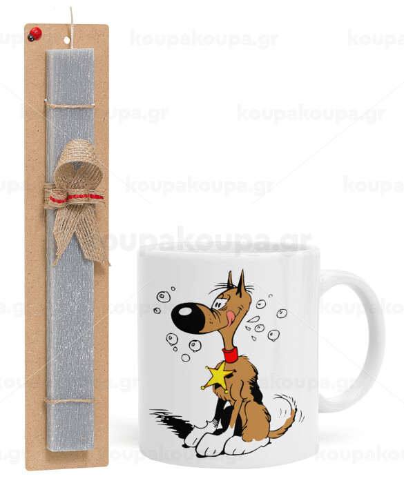 Rantanplan (Ρανταπλάν), Πασχαλινή Λαμπάδα με Κούπα κεραμική (330ml) & κερί αρωματικό πλακέ (30cm) (ΓΚΡΙ)