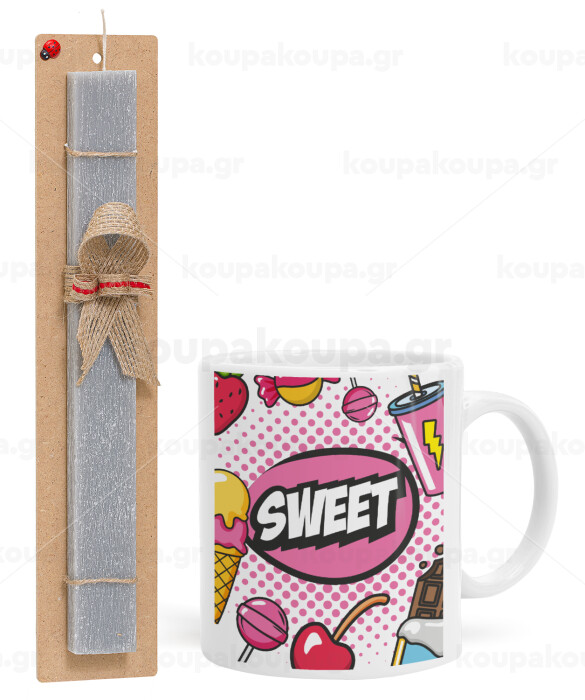 SWEET, Πασχαλινή Λαμπάδα με Κούπα κεραμική (330ml) & κερί αρωματικό πλακέ (30cm) (ΓΚΡΙ)