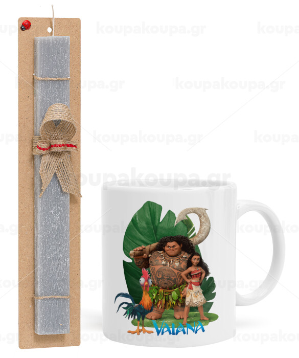 Vaiana, Πασχαλινή Λαμπάδα με Κούπα κεραμική (330ml) & κερί αρωματικό πλακέ (30cm) (ΓΚΡΙ)