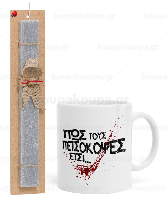 Πως τους πετσόκοψες έτσι..., Πασχαλινή Λαμπάδα με Κούπα κεραμική (330ml) & κερί αρωματικό πλακέ (30cm) (ΓΚΡΙ)