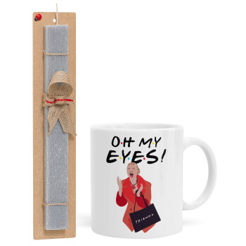 Friends,. oh my eyes Phoebe, Πασχαλινή Λαμπάδα με Κούπα κεραμική (330ml) & κερί αρωματικό πλακέ (30cm) (ΓΚΡΙ)