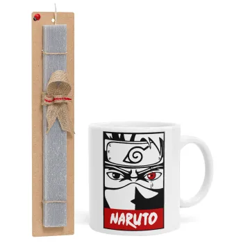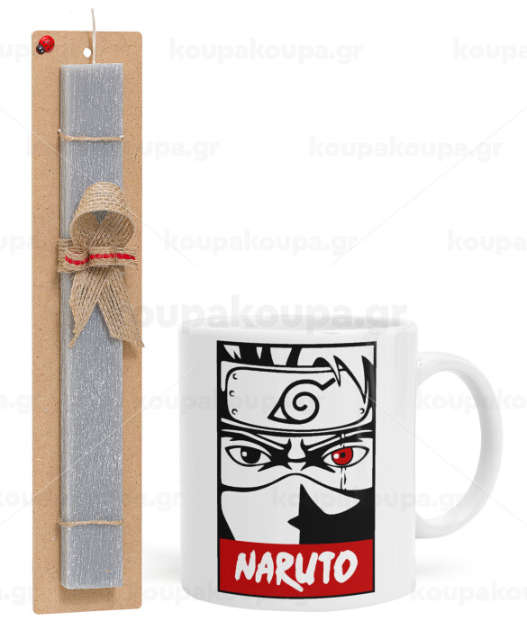 Naruto anime, Πασχαλινή Λαμπάδα με Κούπα κεραμική (330ml) & κερί αρωματικό πλακέ (30cm) (ΓΚΡΙ)
