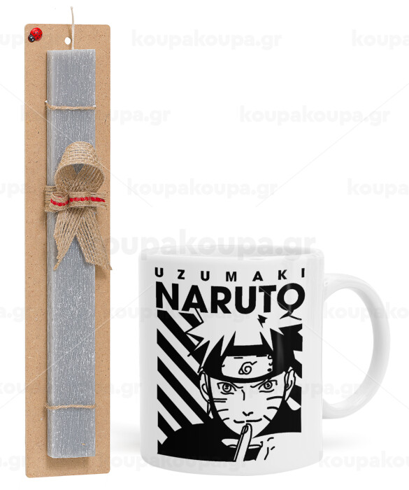 Naruto uzumaki, Πασχαλινή Λαμπάδα με Κούπα κεραμική (330ml) & κερί αρωματικό πλακέ (30cm) (ΓΚΡΙ)