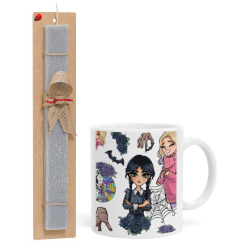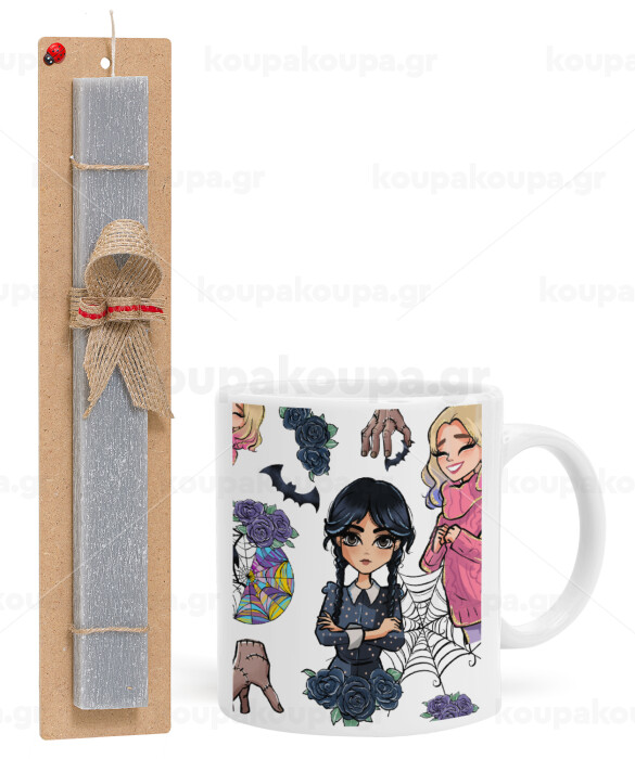 Wednesday and Enid Sinclair, Πασχαλινή Λαμπάδα με Κούπα κεραμική (330ml) & κερί αρωματικό πλακέ (30cm) (ΓΚΡΙ)