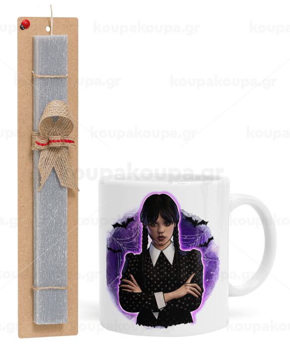 Wednesday moonlight, Πασχαλινή Λαμπάδα με Κούπα κεραμική (330ml) & κερί αρωματικό πλακέ (30cm) (ΓΚΡΙ)