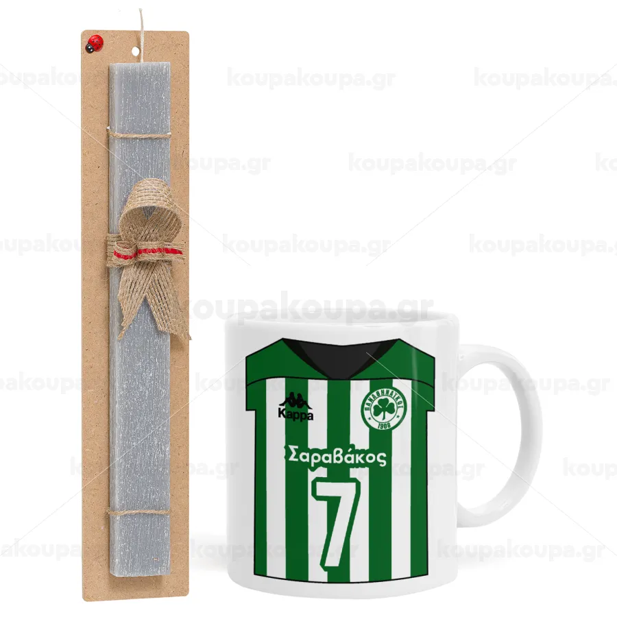 Παναθηναϊκός εμφάνιση, Πασχαλινή Λαμπάδα με Κούπα κεραμική (330ml) & κερί αρωματικό πλακέ (30cm) (ΓΚΡΙ)