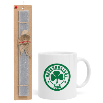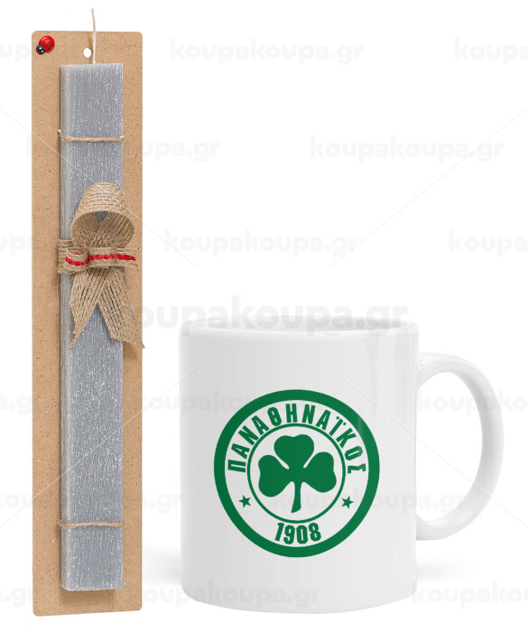ΠΑΟ Παναθηναϊκός, Πασχαλινή Λαμπάδα με Κούπα κεραμική (330ml) & κερί αρωματικό πλακέ (30cm) (ΓΚΡΙ)