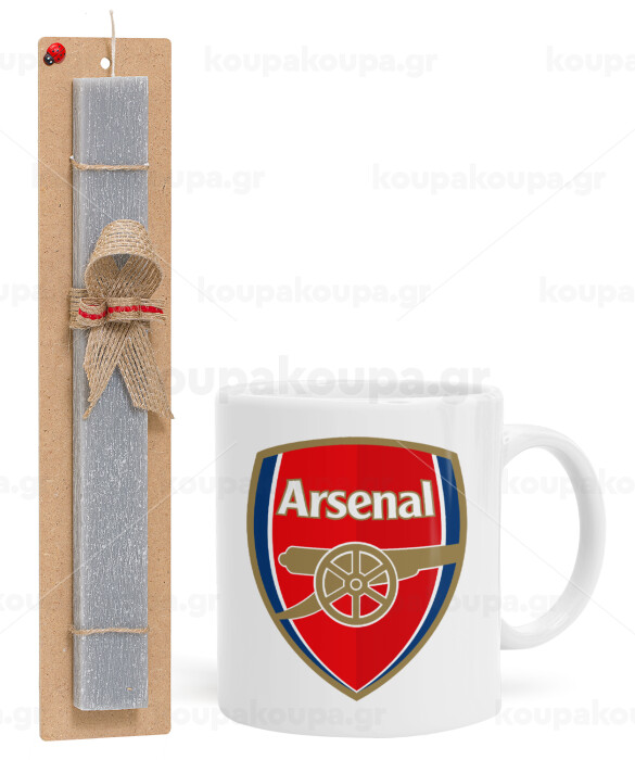 Arsenal, Πασχαλινή Λαμπάδα με Κούπα κεραμική (330ml) & κερί αρωματικό πλακέ (30cm) (ΓΚΡΙ)