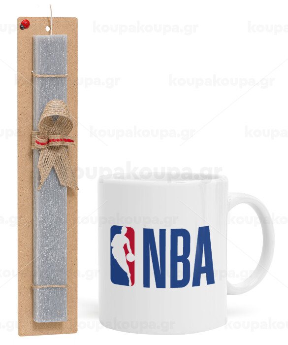 NBA Classic, Πασχαλινή Λαμπάδα με Κούπα κεραμική (330ml) & κερί αρωματικό πλακέ (30cm) (ΓΚΡΙ)