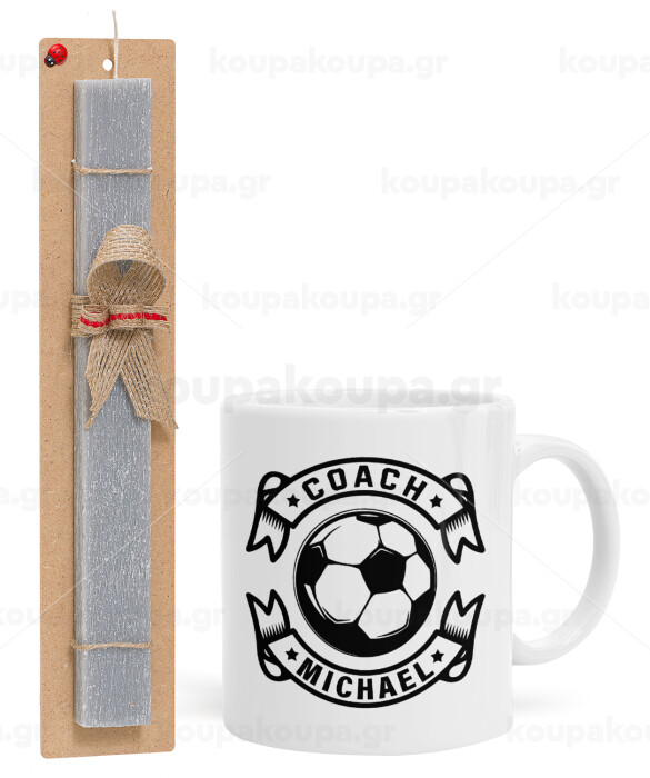 Soccer coach, Πασχαλινή Λαμπάδα με Κούπα κεραμική (330ml) & κερί αρωματικό πλακέ (30cm) (ΓΚΡΙ)