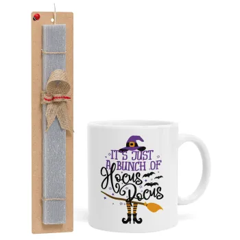 It's just a bunch of hocus pocus - halloween, Πασχαλινή Λαμπάδα με Κούπα κεραμική (330ml) & κερί αρωματικό πλακέ (30cm) (ΓΚΡΙ)