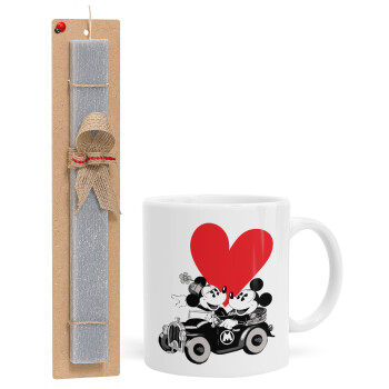 Mickey & Minnie love car, Πασχαλινή Λαμπάδα με Κούπα κεραμική (330ml) & κερί αρωματικό πλακέ (30cm) (ΓΚΡΙ)