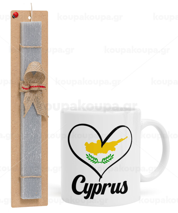 Cyprus flag, Πασχαλινή Λαμπάδα με Κούπα κεραμική (330ml) & κερί αρωματικό πλακέ (30cm) (ΓΚΡΙ)