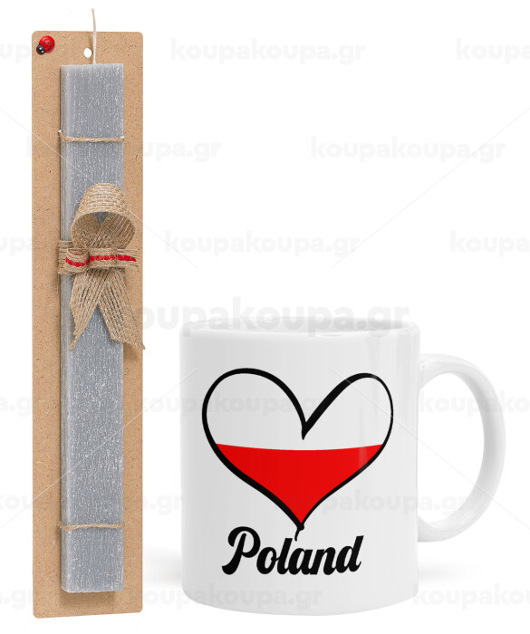 Poland flag, Πασχαλινή Λαμπάδα με Κούπα κεραμική (330ml) & κερί αρωματικό πλακέ (30cm) (ΓΚΡΙ)