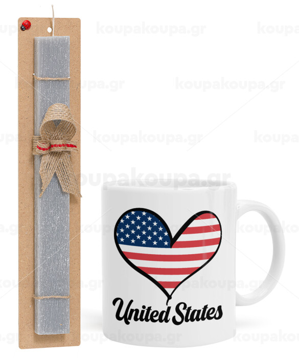USA flag, Πασχαλινή Λαμπάδα με Κούπα κεραμική (330ml) & κερί αρωματικό πλακέ (30cm) (ΓΚΡΙ)