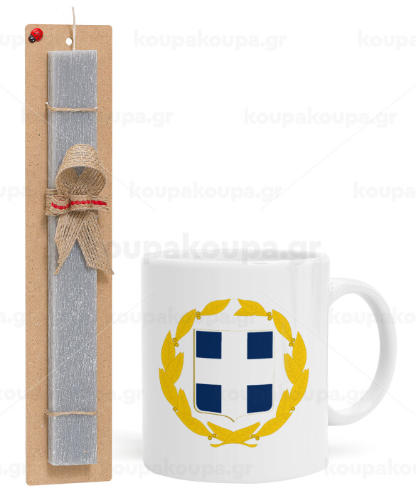 Hellas Εθνόσημο, Πασχαλινή Λαμπάδα με Κούπα κεραμική (330ml) & κερί αρωματικό πλακέ (30cm) (ΓΚΡΙ)