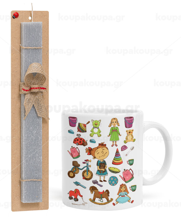 Toys Girl, Πασχαλινή Λαμπάδα με Κούπα κεραμική (330ml) & κερί αρωματικό πλακέ (30cm) (ΓΚΡΙ)