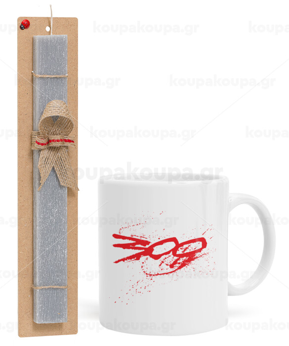 Οι 300 της Σπάρτης, Πασχαλινή Λαμπάδα με Κούπα κεραμική (330ml) & κερί αρωματικό πλακέ (30cm) (ΓΚΡΙ)