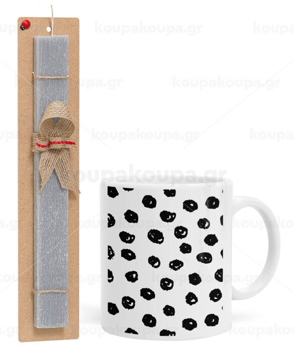 Doodle Dots, Πασχαλινή Λαμπάδα με Κούπα κεραμική (330ml) & κερί αρωματικό πλακέ (30cm) (ΓΚΡΙ)