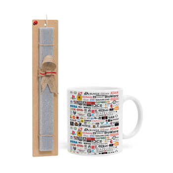 Πασχαλινή Λαμπάδα με Κούπα κεραμική (330ml) & κερί αρωματικό πλακέ (30cm) (ΓΚΡΙ) με θέμα Gaming