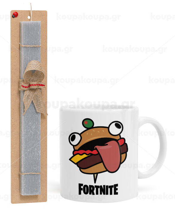 Fortnite Durr Burger, Πασχαλινή Λαμπάδα με Κούπα κεραμική (330ml) & κερί αρωματικό πλακέ (30cm) (ΓΚΡΙ)