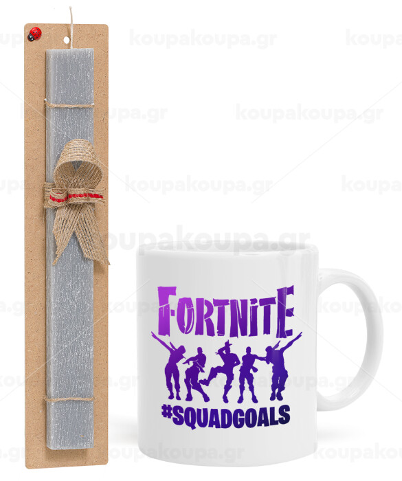 Fortnite #squadgoals, Πασχαλινή Λαμπάδα με Κούπα κεραμική (330ml) & κερί αρωματικό πλακέ (30cm) (ΓΚΡΙ)