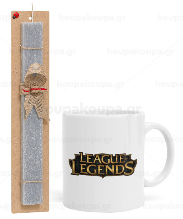 League of Legends LoL, Πασχαλινή Λαμπάδα με Κούπα κεραμική (330ml) & κερί αρωματικό πλακέ (30cm) (ΓΚΡΙ)