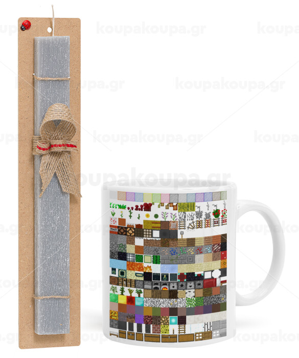 Minecraft blocks, Πασχαλινή Λαμπάδα με Κούπα κεραμική (330ml) & κερί αρωματικό πλακέ (30cm) (ΓΚΡΙ)