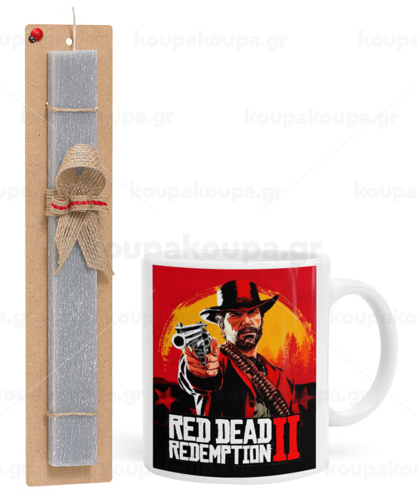 Red Dead Redemption 2, Πασχαλινή Λαμπάδα με Κούπα κεραμική (330ml) & κερί αρωματικό πλακέ (30cm) (ΓΚΡΙ)