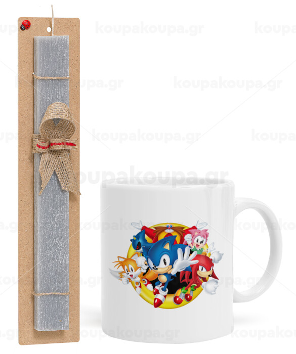 Sonic and friends, Πασχαλινή Λαμπάδα με Κούπα κεραμική (330ml) & κερί αρωματικό πλακέ (30cm) (ΓΚΡΙ)