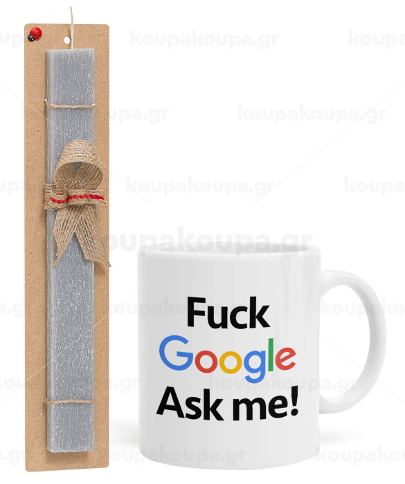 Fuck Google, Ask me!, Πασχαλινή Λαμπάδα με Κούπα κεραμική (330ml) & κερί αρωματικό πλακέ (30cm) (ΓΚΡΙ)