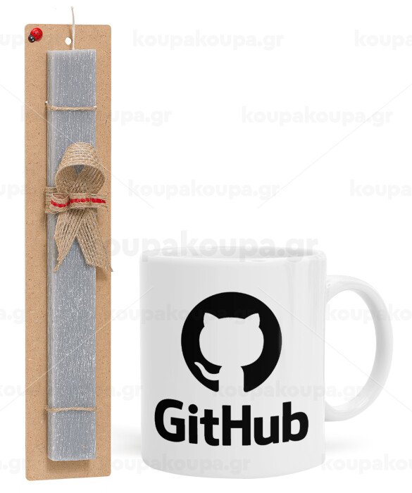 GitHub, Πασχαλινή Λαμπάδα με Κούπα κεραμική (330ml) & κερί αρωματικό πλακέ (30cm) (ΓΚΡΙ)