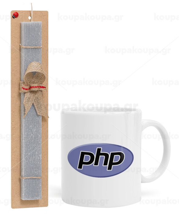 PHP, Πασχαλινή Λαμπάδα με Κούπα κεραμική (330ml) & κερί αρωματικό πλακέ (30cm) (ΓΚΡΙ)