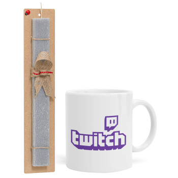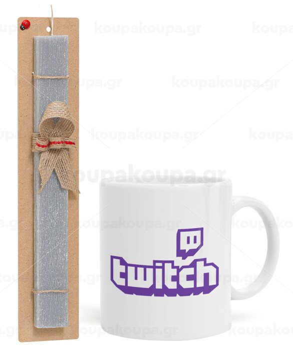 Twitch, Πασχαλινή Λαμπάδα με Κούπα κεραμική (330ml) & κερί αρωματικό πλακέ (30cm) (ΓΚΡΙ)