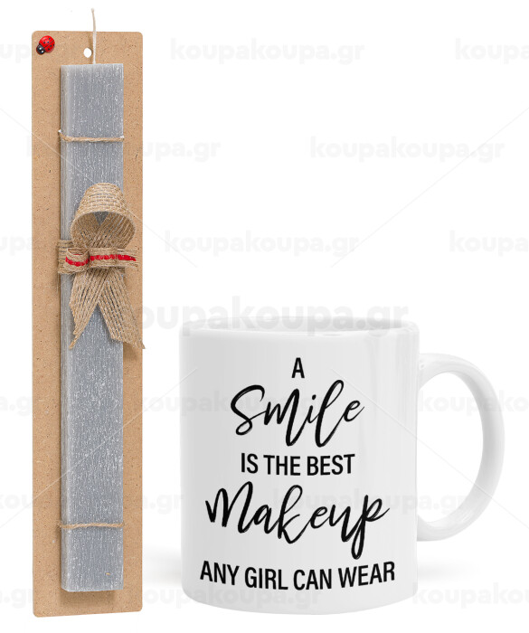 A slime is the best makeup any girl can wear, Πασχαλινή Λαμπάδα με Κούπα κεραμική (330ml) & κερί αρωματικό πλακέ (30cm) (ΓΚΡΙ)
