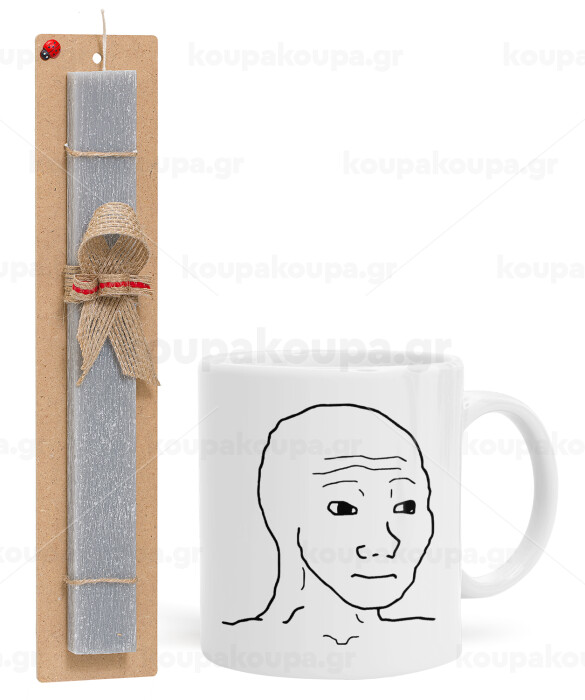 Feel guy, Πασχαλινή Λαμπάδα με Κούπα κεραμική (330ml) & κερί αρωματικό πλακέ (30cm) (ΓΚΡΙ)