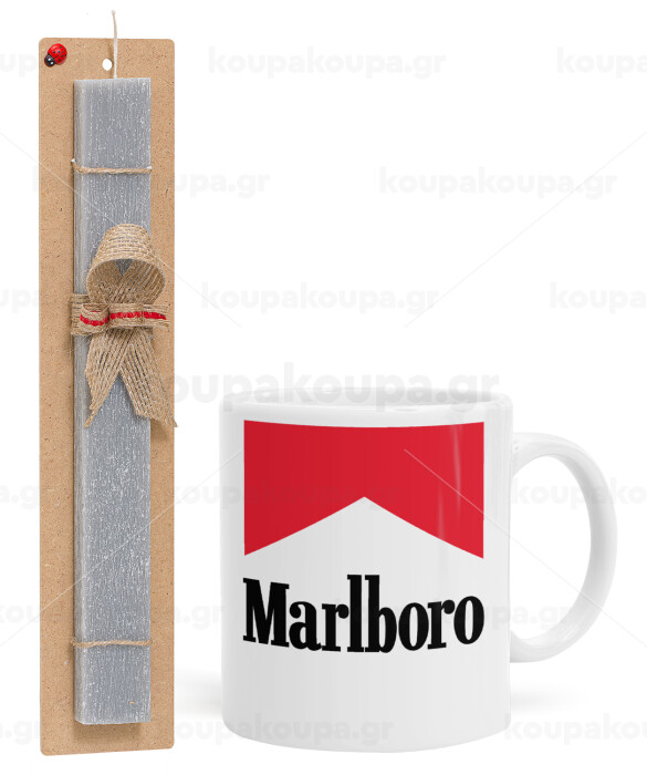 Marlboro, Πασχαλινή Λαμπάδα με Κούπα κεραμική (330ml) & κερί αρωματικό πλακέ (30cm) (ΓΚΡΙ)