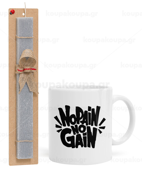 No pain no gain, Πασχαλινή Λαμπάδα με Κούπα κεραμική (330ml) & κερί αρωματικό πλακέ (30cm) (ΓΚΡΙ)