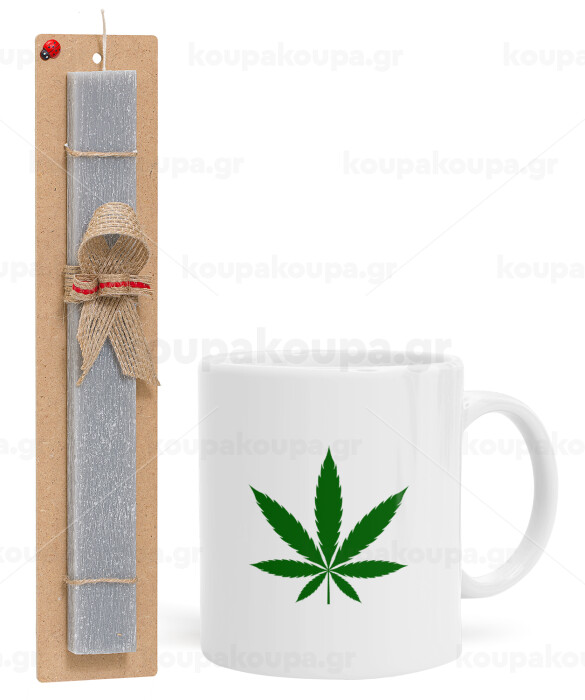 Weed, Πασχαλινή Λαμπάδα με Κούπα κεραμική (330ml) & κερί αρωματικό πλακέ (30cm) (ΓΚΡΙ)