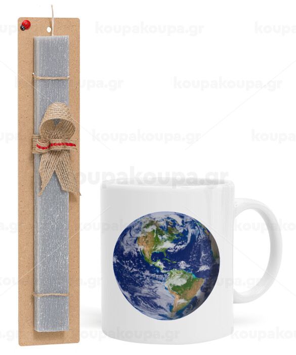 Planet Earth, Πασχαλινή Λαμπάδα με Κούπα κεραμική (330ml) & κερί αρωματικό πλακέ (30cm) (ΓΚΡΙ)
