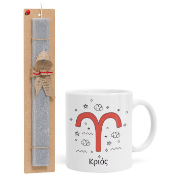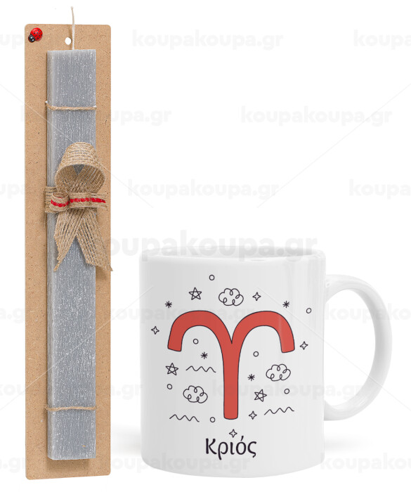 Ζώδια Κριός, Πασχαλινή Λαμπάδα με Κούπα κεραμική (330ml) & κερί αρωματικό πλακέ (30cm) (ΓΚΡΙ)
