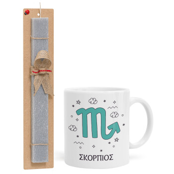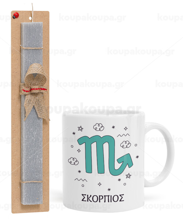 Ζώδια Σκορπιός, Πασχαλινή Λαμπάδα με Κούπα κεραμική (330ml) & κερί αρωματικό πλακέ (30cm) (ΓΚΡΙ)
