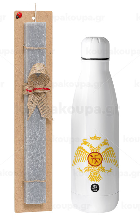 Βυζαντινή αυτοκρατορία, Πασχαλινή Λαμπάδα με μεταλλικό παγούρι θερμός ανοξείδωτο (500ml) & κερί αρωματικό πλακέ (30cm) (ΓΚΡΙ)