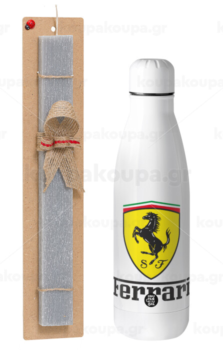 Ferrari S.p.A., Πασχαλινή Λαμπάδα με μεταλλικό παγούρι θερμός ανοξείδωτο (500ml) & κερί αρωματικό πλακέ (30cm) (ΓΚΡΙ)