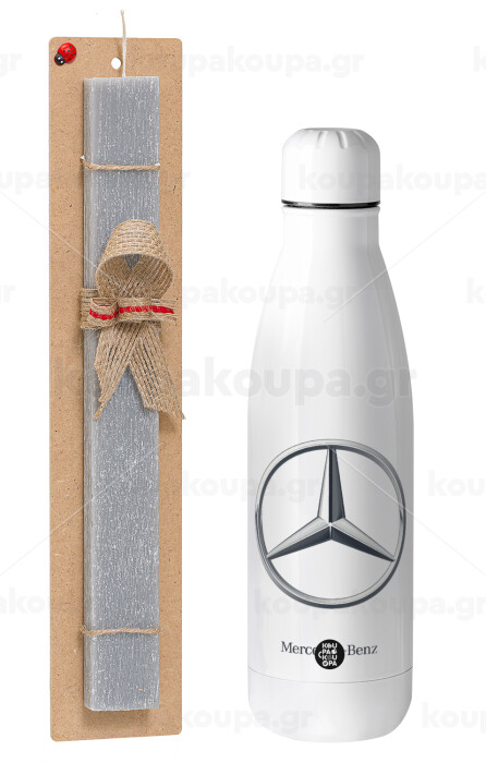 mercedes, Πασχαλινή Λαμπάδα με μεταλλικό παγούρι θερμός ανοξείδωτο (500ml) & κερί αρωματικό πλακέ (30cm) (ΓΚΡΙ)