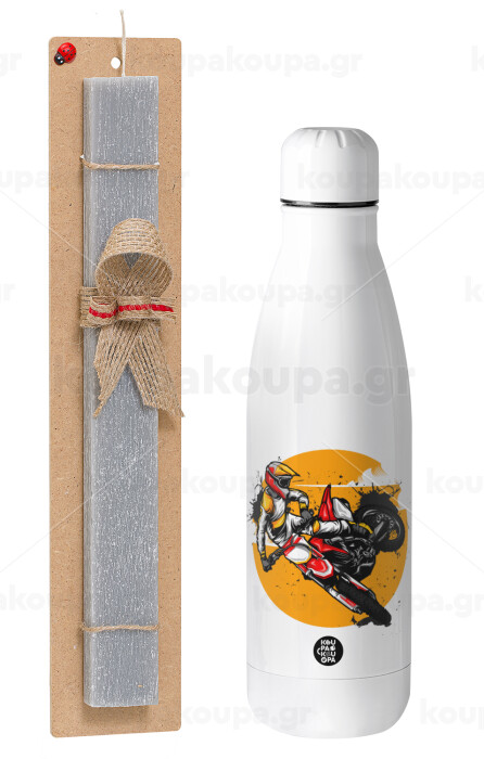 Motocross, Πασχαλινή Λαμπάδα με μεταλλικό παγούρι θερμός ανοξείδωτο (500ml) & κερί αρωματικό πλακέ (30cm) (ΓΚΡΙ)