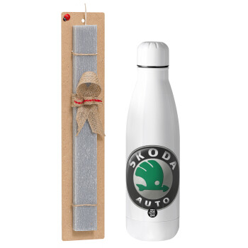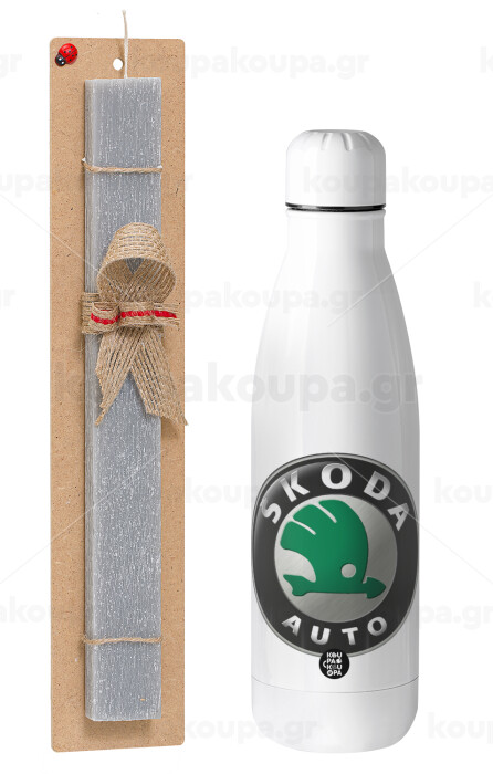 SKODA, Πασχαλινή Λαμπάδα με μεταλλικό παγούρι θερμός ανοξείδωτο (500ml) & κερί αρωματικό πλακέ (30cm) (ΓΚΡΙ)