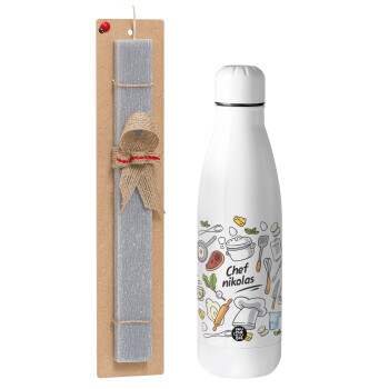 Chef με όνομα, Πασχαλινή Λαμπάδα με μεταλλικό παγούρι θερμός ανοξείδωτο (500ml) & κερί αρωματικό πλακέ (30cm) (ΓΚΡΙ)