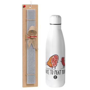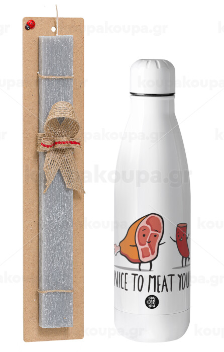 Nice to MEAT you, Πασχαλινή Λαμπάδα με μεταλλικό παγούρι θερμός ανοξείδωτο (500ml) & κερί αρωματικό πλακέ (30cm) (ΓΚΡΙ)